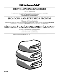Dostarczamy 1 pdf podręczników KitchenAid FRONT-LOADINGGAS DRYER do pobrania za darmo według typów dokumentów: Instrukcja Użytkownika